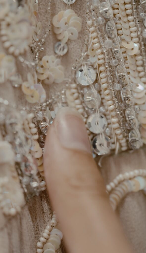 Chaque perle, chaque sequin est respecté. Le vêtement est nettoyé sans perdre son éclat, ni sa structure.