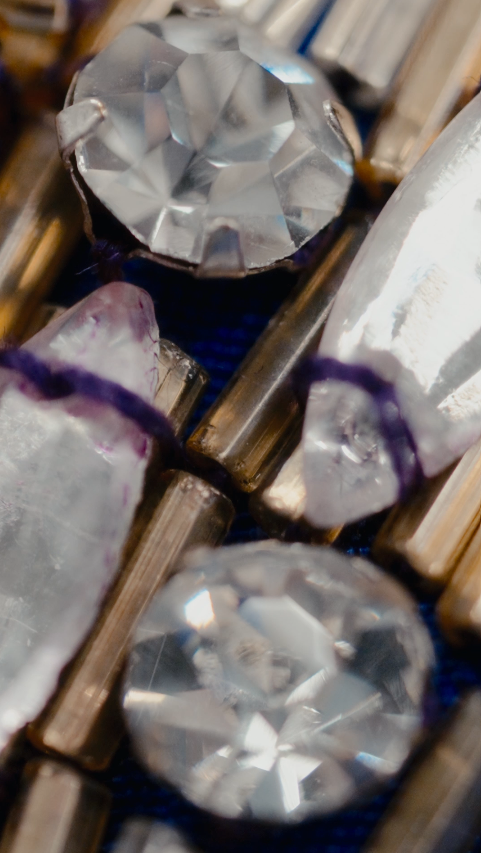 Sequins, paillettes, perles, strass, broderies, soie, velours, satin…